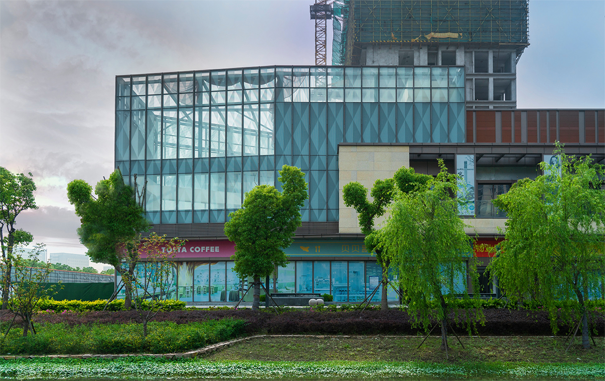 本項(xiàng)目地處上海松江區(qū),地塊緊鄰商務(wù)區(qū)生態(tài)綠核。項(xiàng)目規(guī)劃注重環(huán)境的整體性,試圖與場(chǎng)地形成良好的對(duì)話。在場(chǎng)地特征上要求各功能的安排能完整有效的表達(dá)地塊對(duì)于城市界面的梳理和尊重。