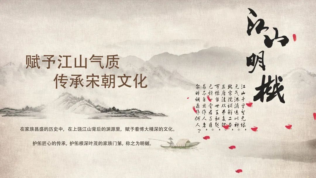 項目分為2個地塊,地塊一占地60畝,地塊二占地43畝。項目示范區位置靠近城市主干道,通達性、昭示性良好。在家族昌盛的歷史中,在上饒江山背后的淵源里,賦予著博大精深的文化,護佑匠心的傳承,護佑根深葉茂的家族門第,稱之為明樾。項目傳承宋朝文化,賦予江山氣質,故案名為【江山明樾】。項目將宋朝美學與現代景觀相結合,打造一個更鮮明的東方時尚。
