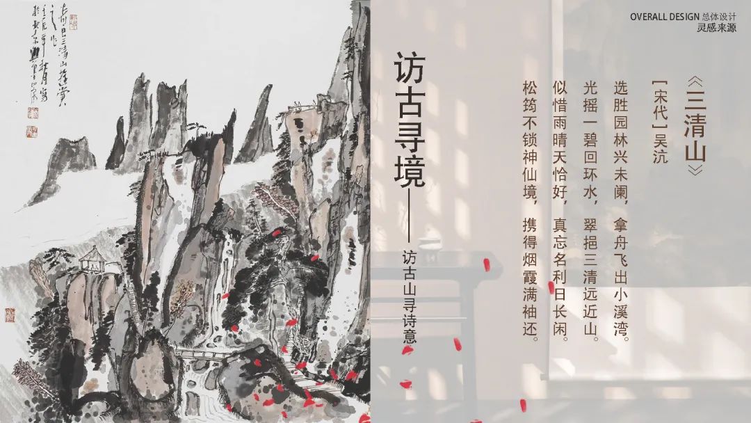 展示區借上饒八景提煉八重景觀體驗,以上饒的八大景觀,月亮灣,玉清臺,龍潭湖,臥龍谷,陽春古戲臺,鵝湖書院,汪口古村,三清宮為背景,將上饒文化融進設計中,打造屬于上饒特色的景觀。