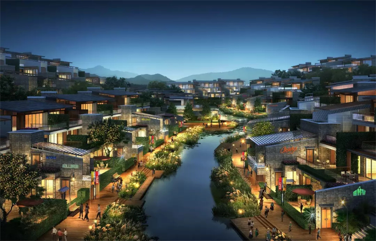 環(huán)境:城市建設往往與人與自然的生態(tài)隔離為代價,過分雕琢的人工綠地系統(tǒng)使生態(tài)結構變得簡單脆弱,抗干擾能力下降。因此,規(guī)劃中,通過組織完整的生態(tài)網絡結構來體現(xiàn)基地依山傍水的環(huán)境特色。為走進自然、親近自然提供最大的可能性,打造一個真正將自然、建筑與人相融合的體驗式度假區(qū)。