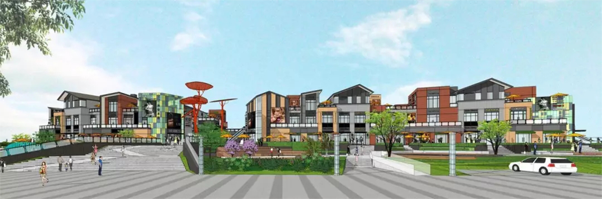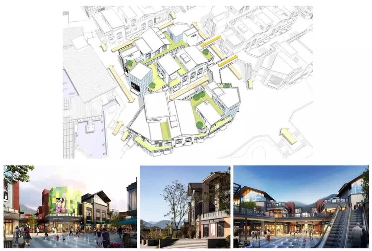 本項目的商業(yè)區(qū)是山地商業(yè)街,由6萬平方米的奧特萊斯區(qū)及1萬平方米的可售商業(yè)組成,商業(yè)均采用商墅的形式設計,獨立店鋪面積均控制在 150 平方米以內,強調豎向分割,可根據(jù)實際銷售的需要自由切割,增加了其靈動性和可售性。
