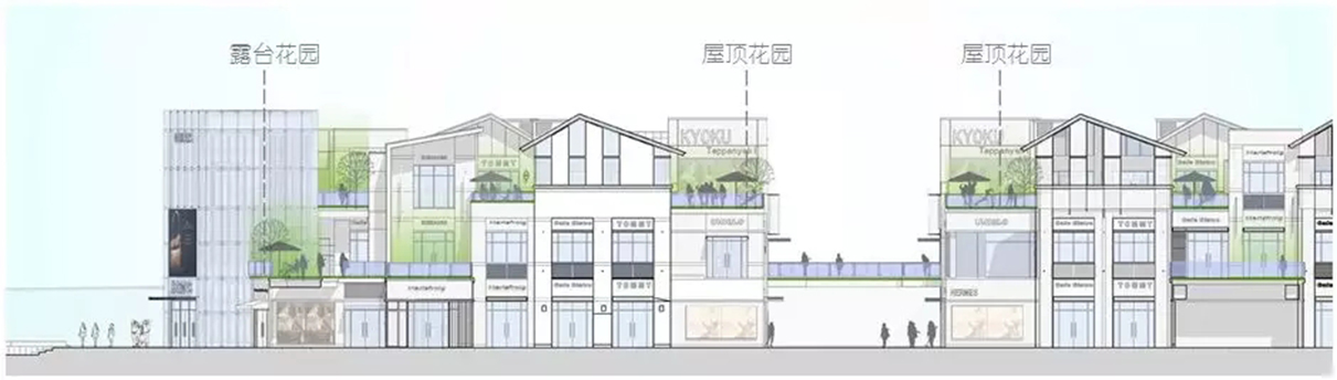 同時設計師利用地形,自然形成不同尺度的露臺以及屋頂綠化,形成錯落的屋頂天際線,豐富整體商業(yè)街的旅游度假氛圍,力求打造武夷山特有的體驗式情景商業(yè)街。