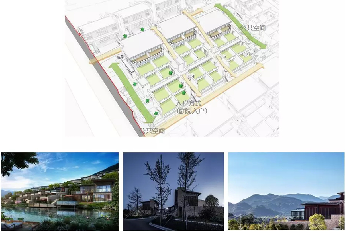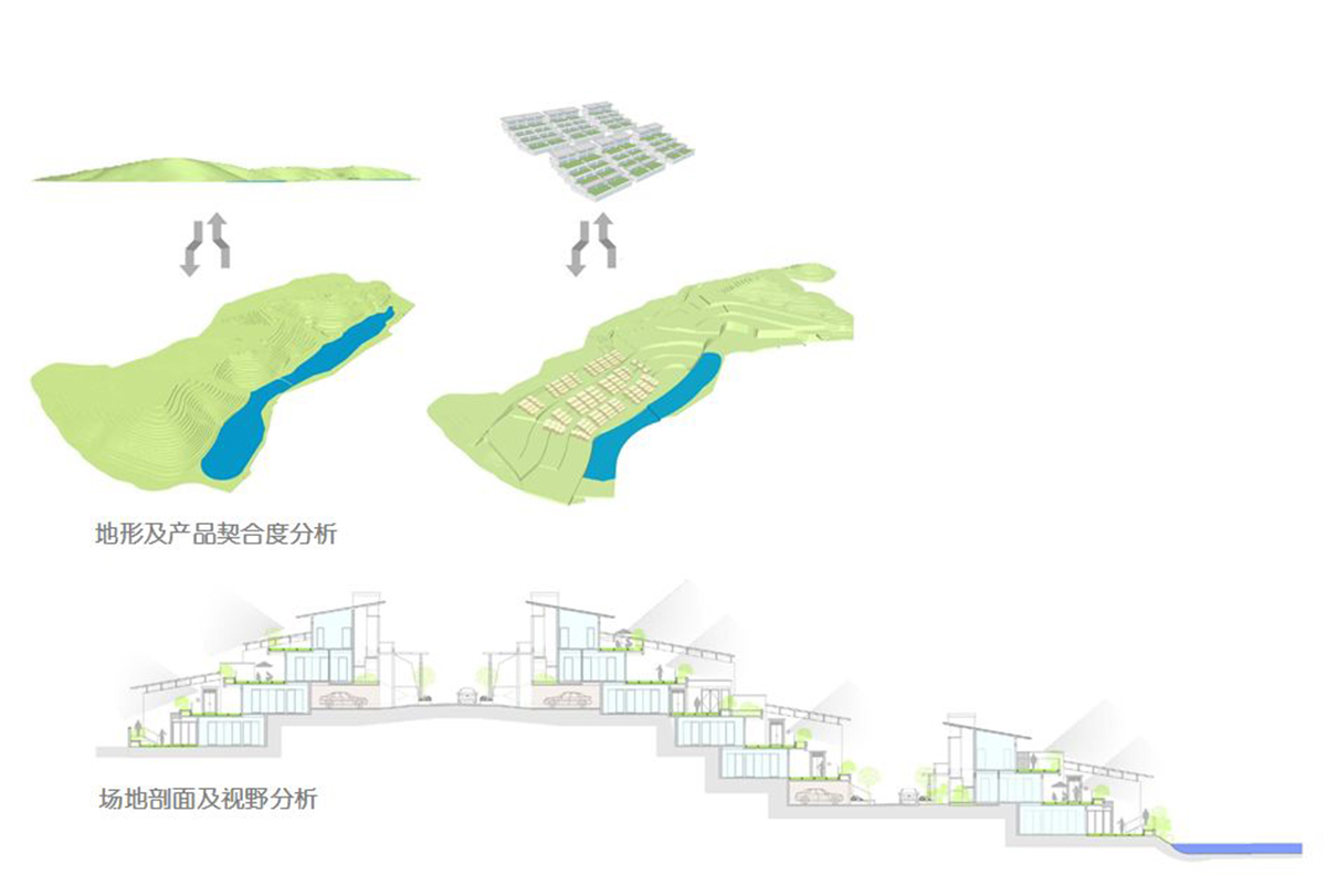 本項目度假小鎮(zhèn)是山地度假疊墅。設計充分利用現(xiàn)有自然條件,結合地形,將建筑與自然有機融合,形成生態(tài)的休憩之所。別墅套型按產品面積大小分為 60平方米、80 平方米、120 平方米三種戶型,將三種戶型產品根據(jù)地形進行組合疊加,形成兩疊、三疊及四疊的跌落式產品。
