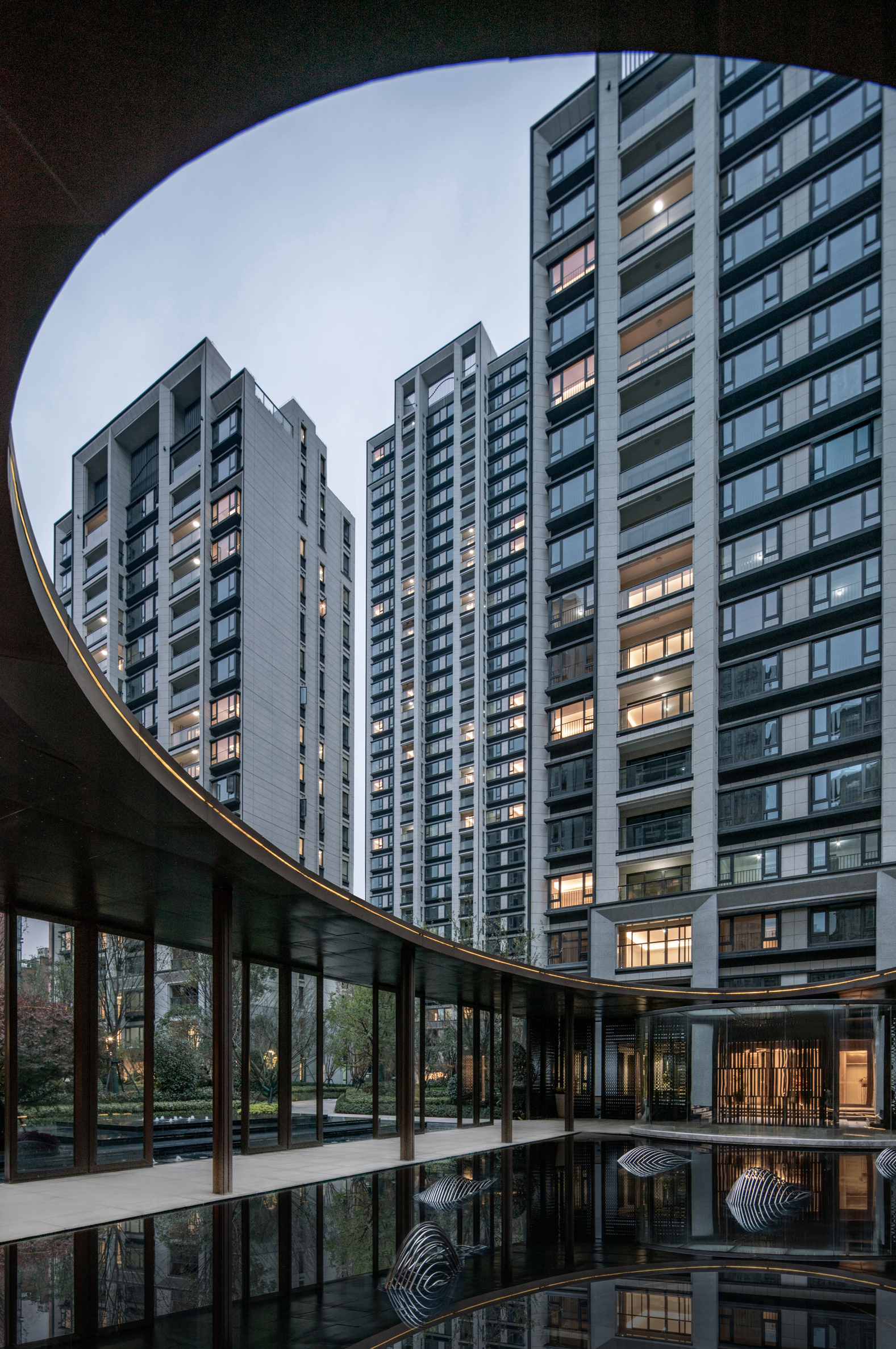 云著的酒店式大堂中空挑高約7米,放大了視覺空間尺度感,給住戶帶來每一次進出的尊貴禮遇。