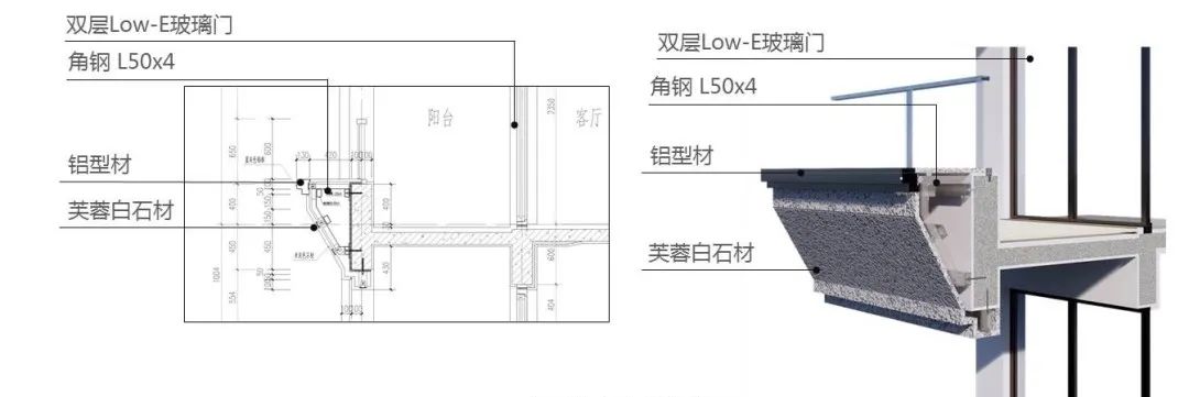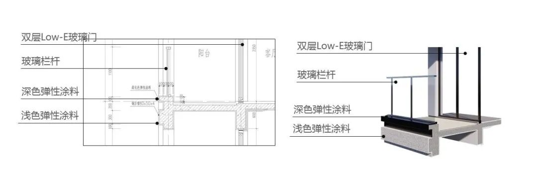 標(biāo)準(zhǔn)斷面設(shè)計中的窗檻墻加玻璃的節(jié)點,陽臺分戶玻璃的設(shè)計研究是提升整個立面觀感的有效投入,同時成本也在可控的范圍內(nèi),團隊通過模型及試樣的推敲有效的控制了細節(jié)的觀感,并以此項目為基準(zhǔn)在后續(xù)的設(shè)計中不斷的迭代優(yōu)化。
