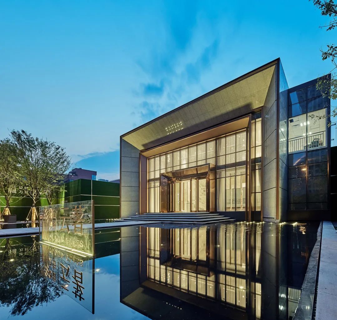 回應(yīng)城市,退讓部分地形,前場設(shè)置大尺度鏡面水,來形成前場空間和展示面。