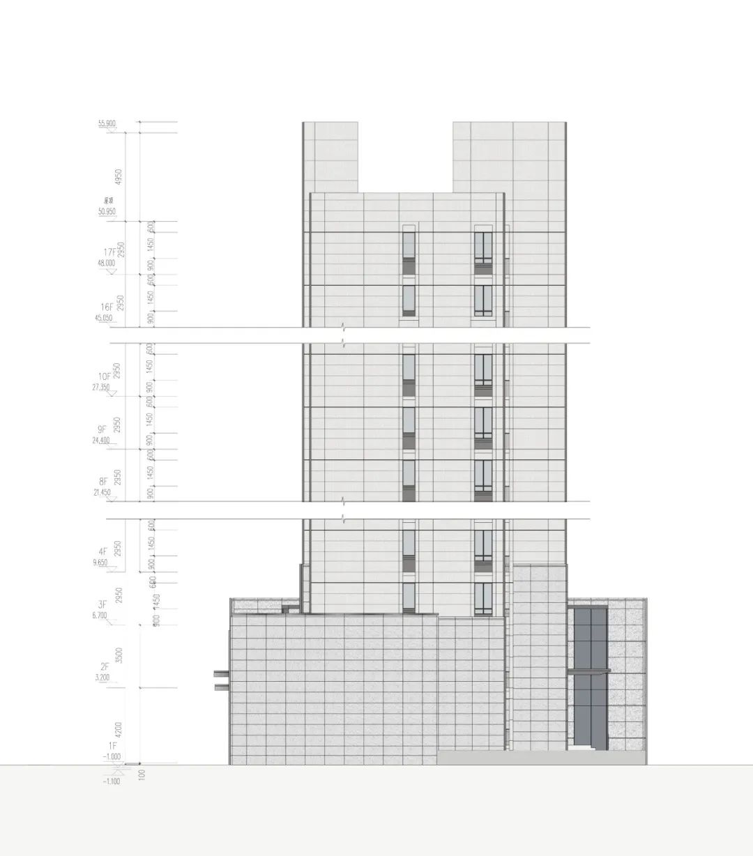 對于建筑立面氣質(zhì)的塑造,設(shè)計團隊決心通過簡潔的現(xiàn)代主義設(shè)計語匯為溫州這座歷史悠久的城市展現(xiàn)一個獨特的富有人文精神的未來。試圖抓取城市的時代感,來拓撲立面的現(xiàn)代意向,在低成本的約束下完成了立面體系的一次創(chuàng)新迭代。